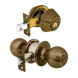 JUEGOS DE POMO Y CERROJO LLAVE-LLAVE, PARA ENTRADA, LATÓN ANTIGUO
