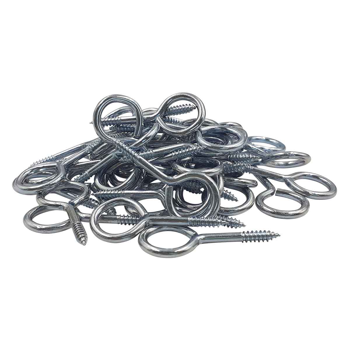 Paquete de 144 armellas tipo cerradas para empotrar en la pared, ideal para colgar objetos, sostener algunos aparatos en superficies como concreto, madera o sujetar lazos desde una posición fija.