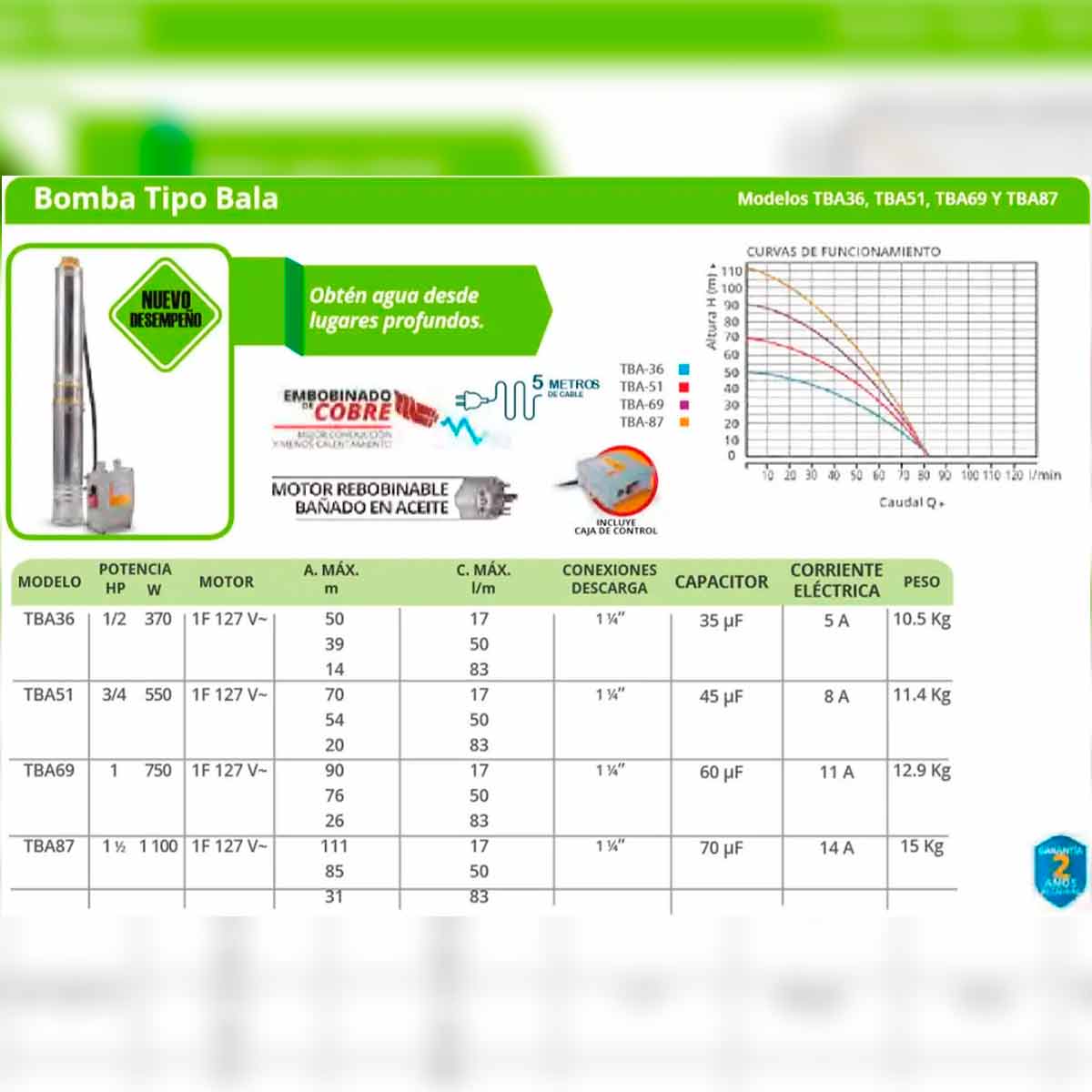 Para pozo profundo de hasta 50 metros máximo, uso agrícola.