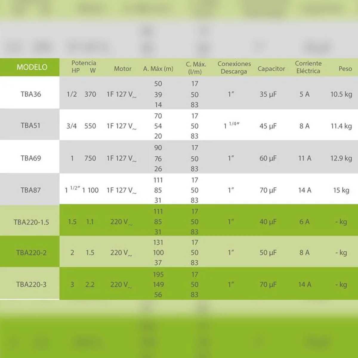 Para pozo profundo de hasta 195 metros maximo, uso agricola.