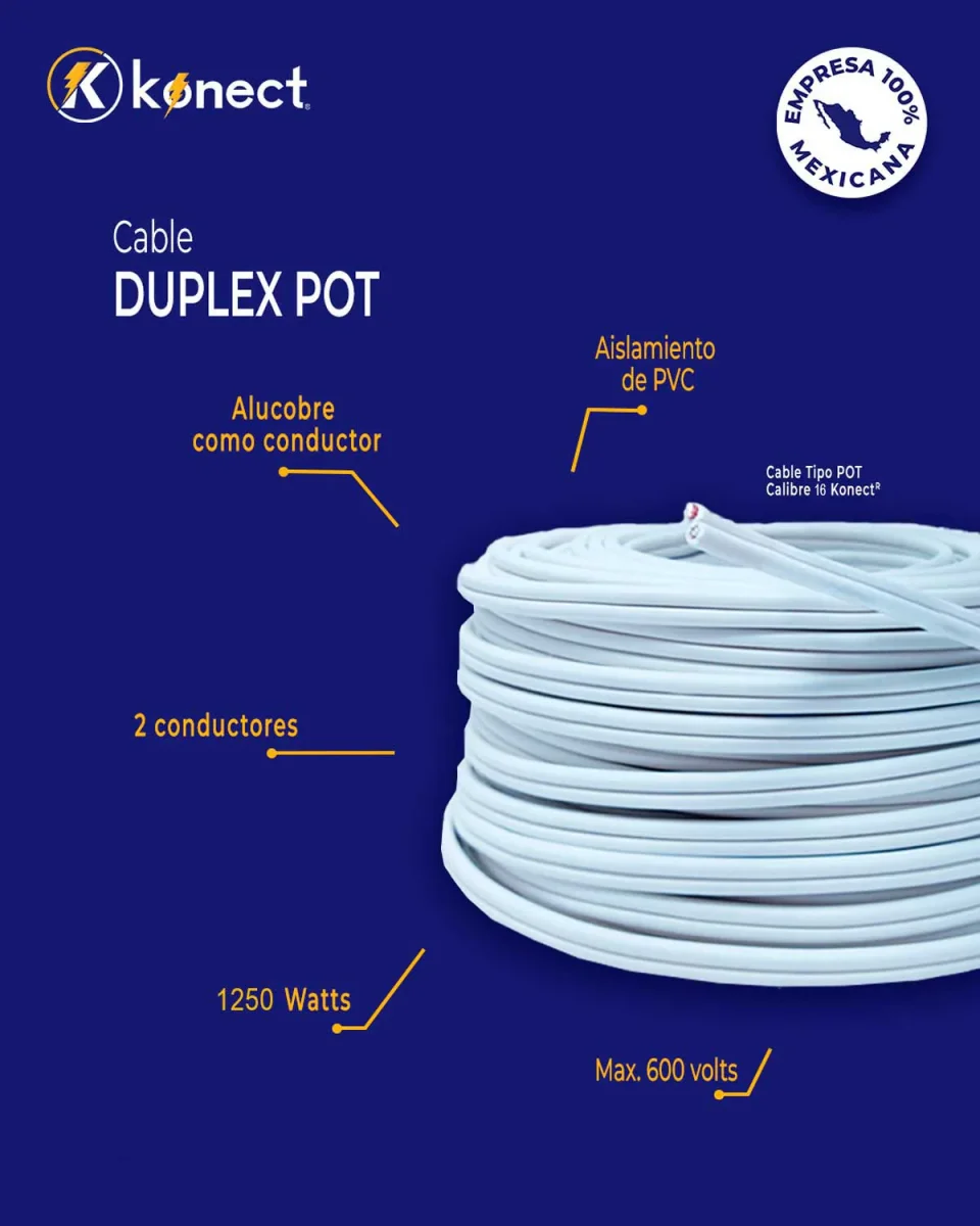 Cable Electrico Pot Duplex Calibre 16 Blanco 100m Cca Alucobre Konect