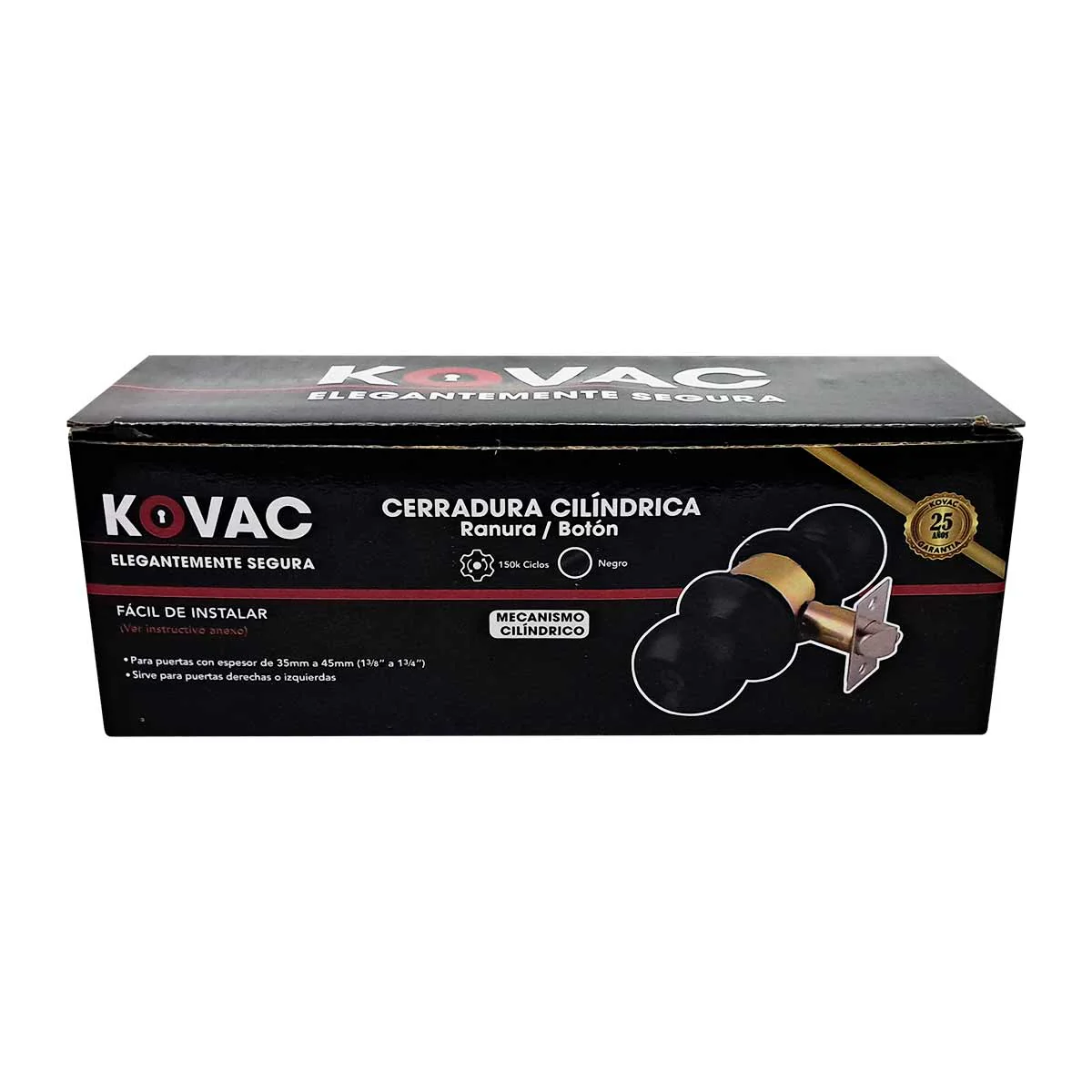 Cerradura Cilíndrica Chapa Baño Perilla Ranura Botón Negro Kovac