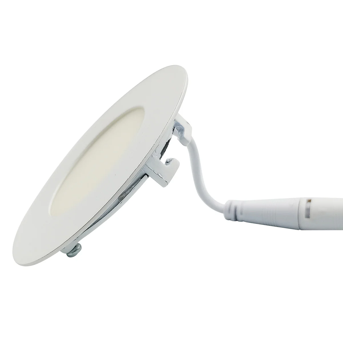 Luminario circular para empotrar con vida nominal de 35,000 horas y un angulo de luz de 180 grados.