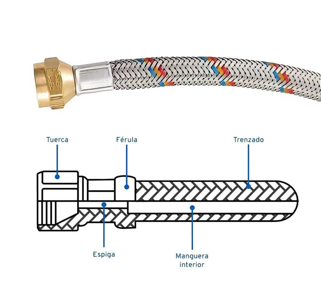 Manguera alimentadora con refuerzo de aluminio para conduccion de gas.