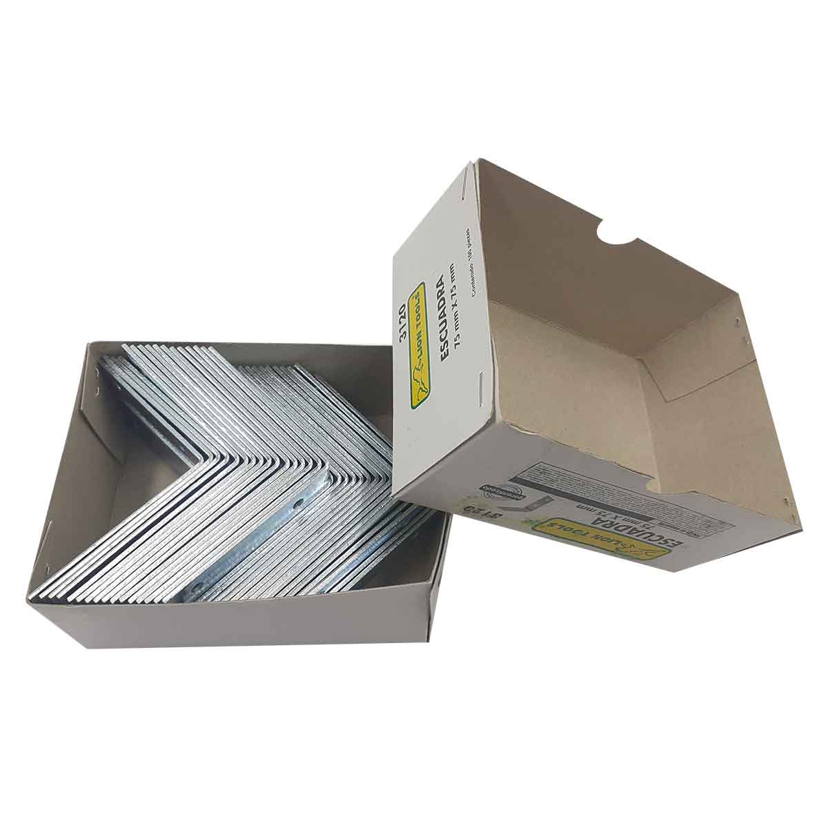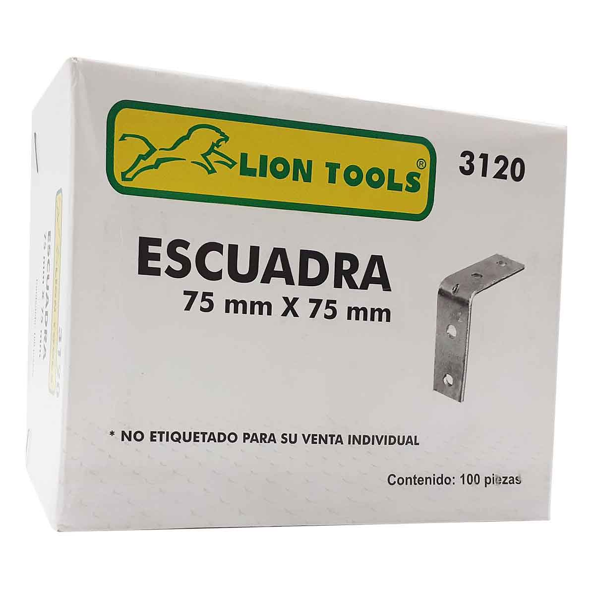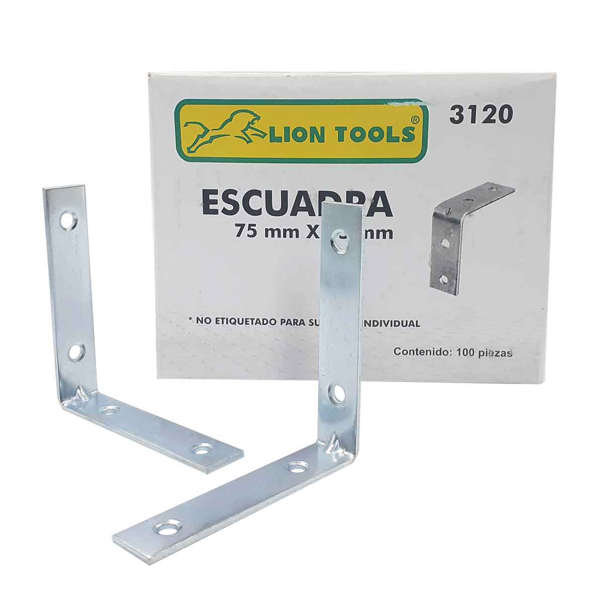 Escuadra galvanizada, soporte angular en forma de L para repisas 75mm x 75mm caja con 100 piezas marca Lion Tools