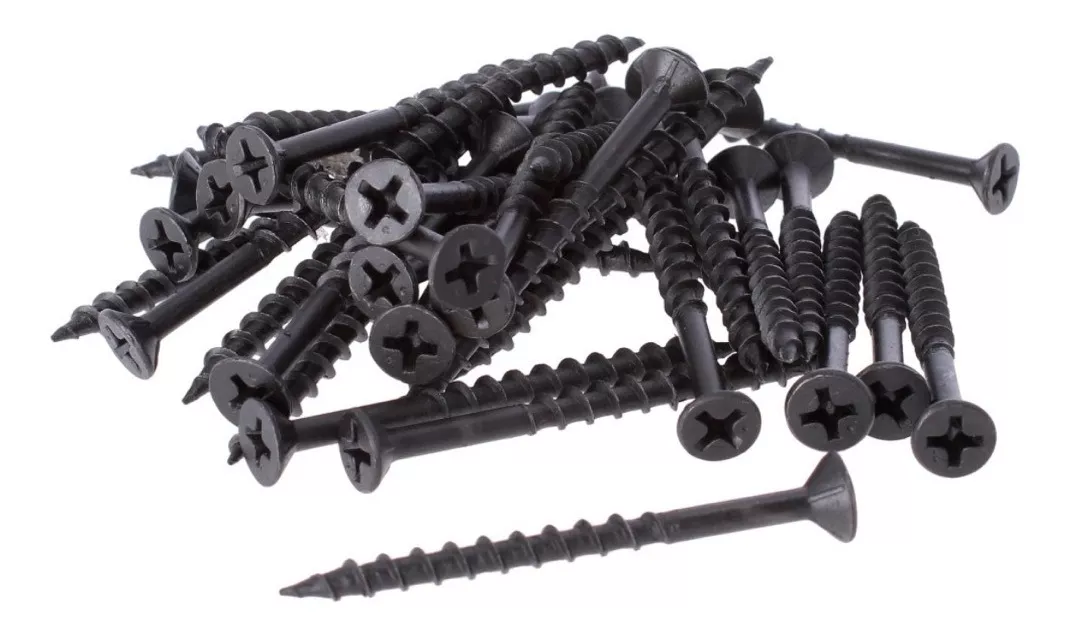 Tornillo Pija Aglomerado de Cabeza Plana Tipo Phillips con Nibs, cuenta con recubrimiento de fosfato negro que los hace más resistente a la corrosión, por lo que tienen una alta durabilidad. Perfectos para construcciones, placas de yeso, paredes de yeso, paneles de madera, escaleras y otras aplicaciones de interior y exterior. Gran variedad de medidas disponibles para todo tipo de trabajo de carpintería.
